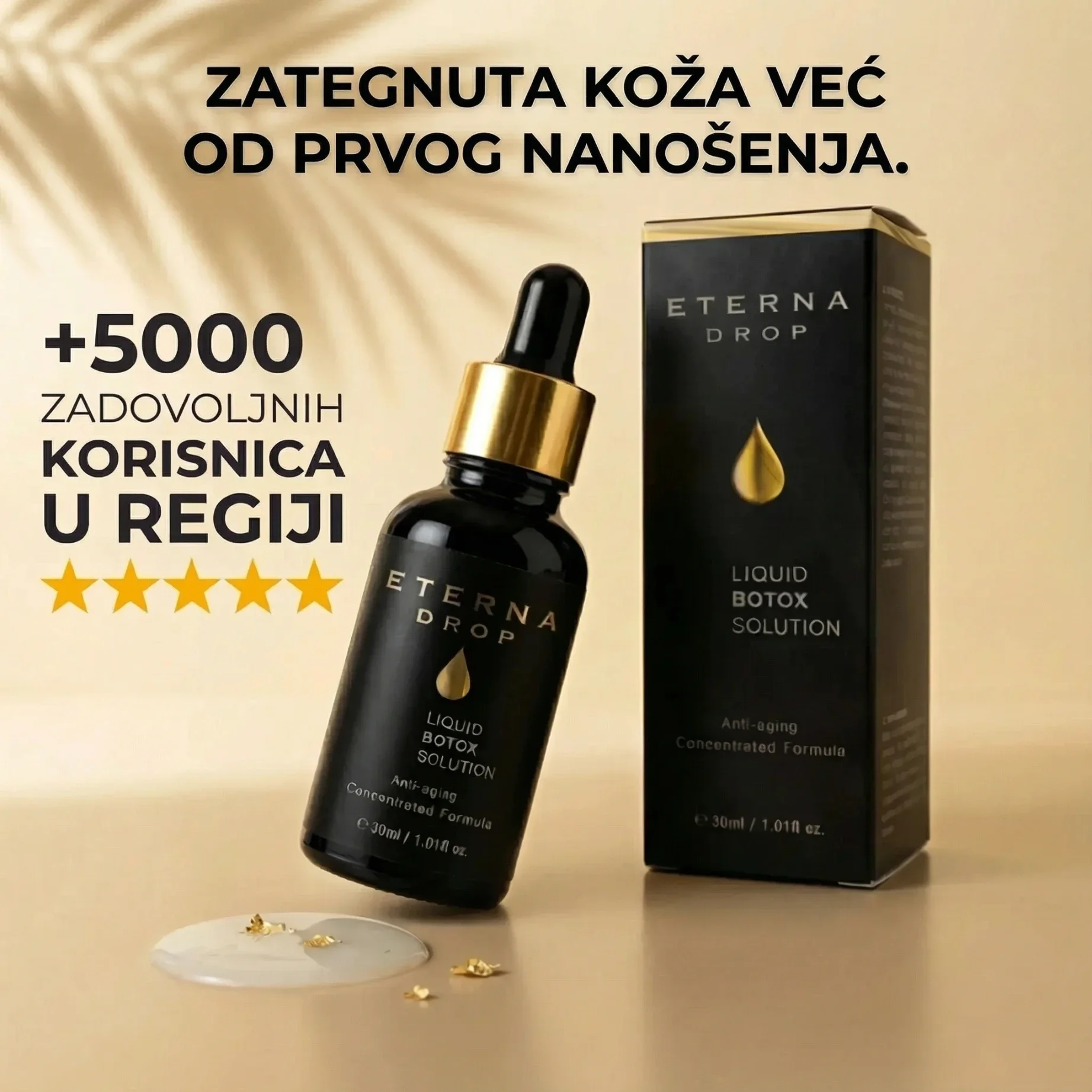 Pozdrav. Serum je izuzetno dobar. Bila sam skeptična zbog obećanja koja dajete, ali proizvod ih stvarno opravdava. Već mi je neizostavan dio rutine. Inače sam sentimentalnija i kada imam nešto ne mijenjam to, ali stvarno mi se jako sviđa serum. Koristila sam Loreal i druge velike brendove i također su mi se sviđali, ali davala sam previše novca za raznu kozmetiku koja rješava različite probleme poput hidratacije, zatezanja, bolje elastičnosti, tamnih mrlja itd., ali Eterna Drop jednostavno rješava sve to, a nije tako skup. Nastavite raditi dobre proizvode. Hvala još jednom.