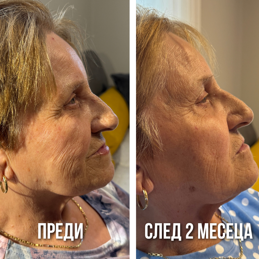 Възстановява увисналата Ви челюстна линия до предишната ѝ слава